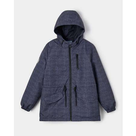 Удлинённая куртка для мальчика Futurino в тёмно-синем цвете, со светоотражающей нашивкой.