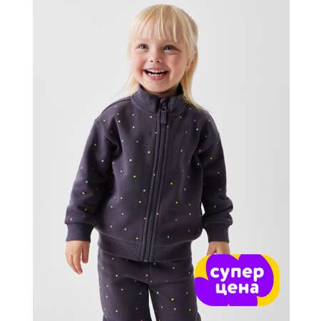 Тёмно-серая толстовка для девочки BabyGo в цветной горошек.