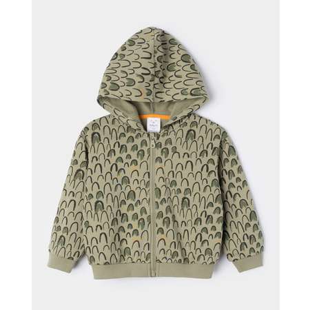 Толстовка для мальчика BabyGo Trend цвета хаки, декорированная цветным анималистическим принтом.