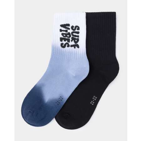 В комплекте Futurino две пары носков для мальчика - однотонные тёмно-синие и с градиентом, декорированные надписью "Surf vibes".