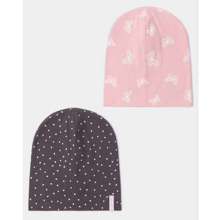 В комплекте Futurino две шапки для девочки - тёмно-серая в горошек и розовая с бабочками.