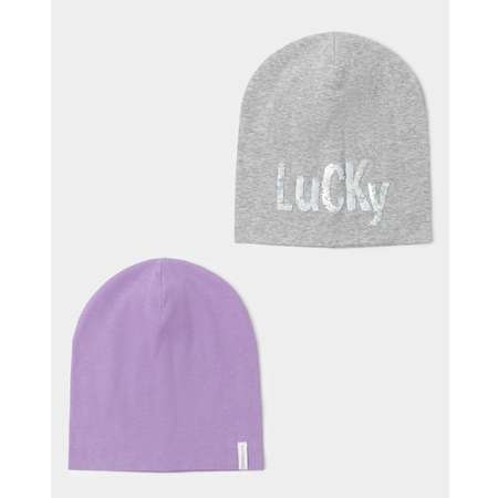 В комплекте Futurino две шапки для девочки - сиреневая и серая с надписью из пайеток "Lucky".