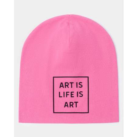 Ярко-розовая шапка для девочки Futurino с надписью "Art is life is art".