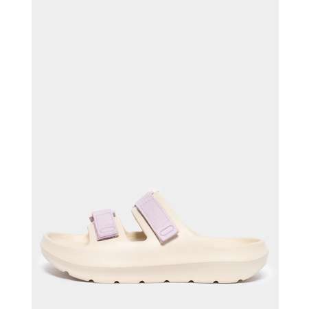 Бежевые шлёпанцы для девочки Wappo с контрастными текстильными ремешками. Подходят для пляжа и бассейна.
