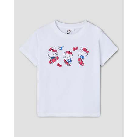 Белая футболка для девочки Hello Kitty с двусторонним цветным принтом.