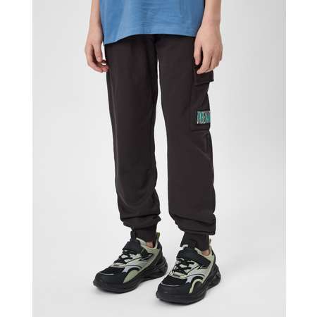 Тёмно-серые трикотажные брюки для мальчика Futurino с накладным карманом, декорированным нашивкой.