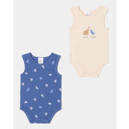 В комплекте BabyGо две боди-майки для мальчика, декорированные принтом с динозаврами - синего и бежевого цвета.