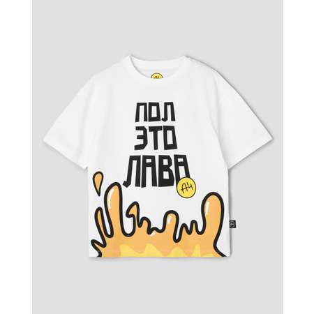 Белая футболка для мальчика А4 с контрастным принтом "Пол это лава".