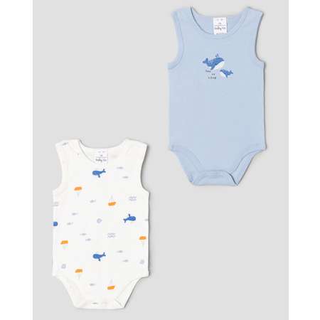 В комплекте BabyGо две боди-майки для мальчика, декорированные принтом с китами - голубого и белого цвета.