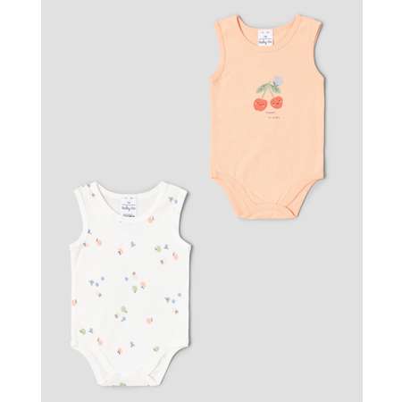 В комплекте BabyGо две боди-майки для девочки - в белом цвете с фруктовым принтом, и в оранжевом цвете с ягодным принтом.