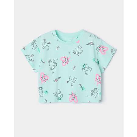 Укороченная футболка для девочки Futurino, декорированная принтом с котиками.