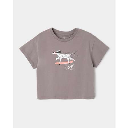 Серая укороченная футболка для девочки Futurino, декорированная цветным принтом.