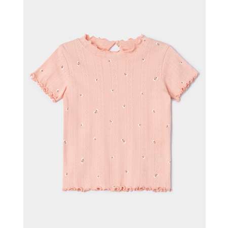 Розовая футболка для девочки BabyGо с узором, декорированная нежным цветочным принтом.