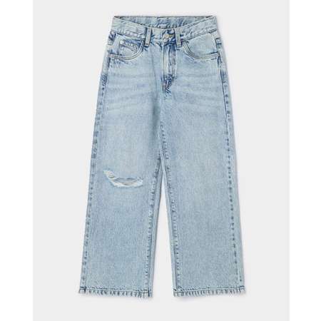 Широкие джинсы для девочки Futurino голубого цвета с разрезом.
