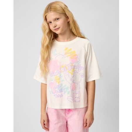 Белая футболка для девочки Futurino, декорированная цветным принтом в стиле граффити.