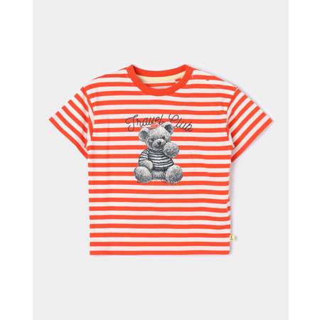 Полосатая футболка для мальчика BabyGо Trend, декорированная принтом с медвежонком.