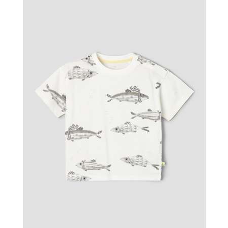 Белая футболка для мальчика BabyGо Trend, декорированная принтом с рыбками.