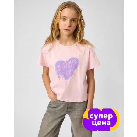 Светло-розовая футболка для девочки Futurino с надписью "Favourite T-shirt".