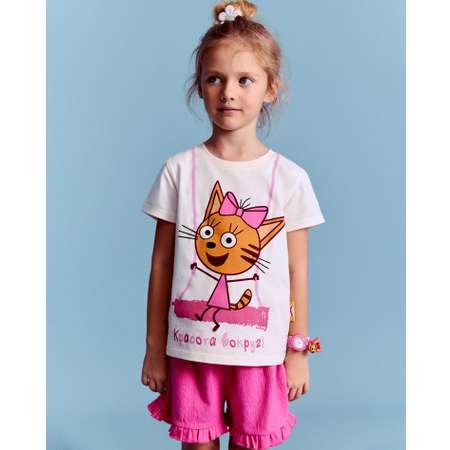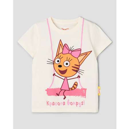 Футболка для девочки Три кота, декорированная красочным принтом с Карамелькой "Красота вокруг".