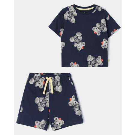 Синий комплект для мальчика BabyGо Trend из шорт и футболки, декорированных принтом с медвежатами.