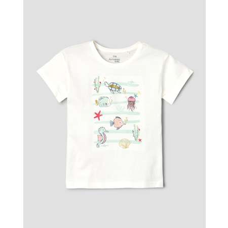 Белая футболка для девочки Futurino, декорированная цветным принтом с блёстками и пайетками "морские жители".