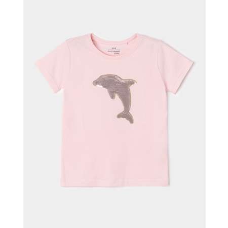 Розовая футболка для девочки Futurino с декором из пайеток в виде дельфина.