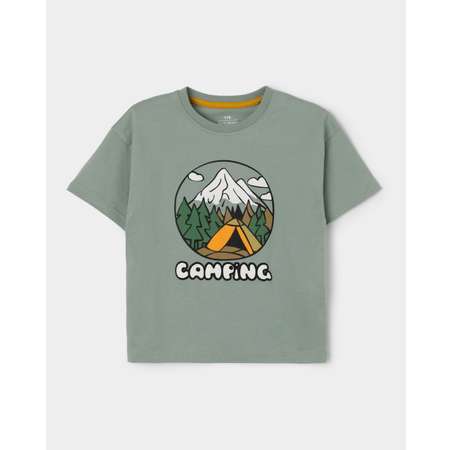 Мятная футболка для мальчика Futurino Fashion с цветным принтом "Camping".