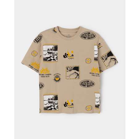 Бежевая футболка для мальчика Futurino Fashion с контрастным принтом.