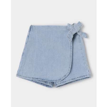 Джинсовая юбка-шорты для девочки Futurino Fashion голубого цвета, с запАхом на завязках.