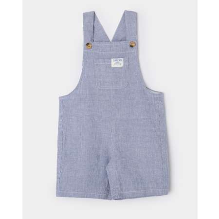Текстильный полукомбинезон-шорты для мальчика BabyGo в синюю полоску, с нашивкой на нагрудном кармане.