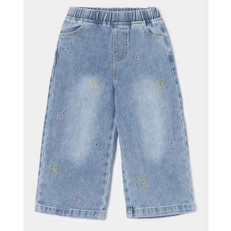 Широкие джинсы для девочки BabyGo с цветочной вышивкой.