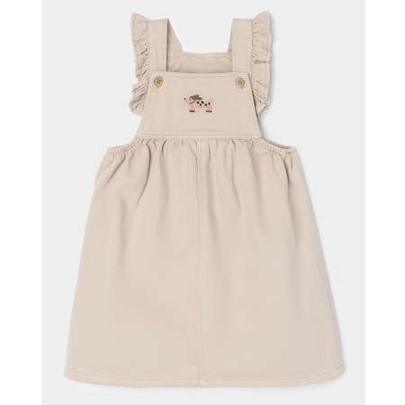 Бежевый текстильный сарафан для девочки BabyGо с оборками и цветной вышивкой.