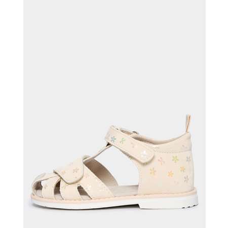 Закрытые бежевые сандалии для девочки Tombi с цветочным принтом.