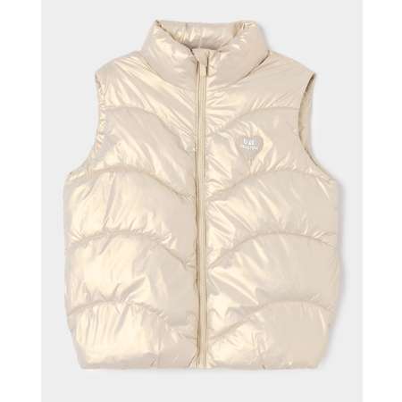 Стёганый жилет для девочки Futurino в жемчужно-бежевом цвете, декорирован нашивкой.