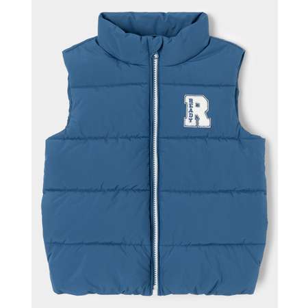 Стёганый жилет для мальчика BabyGо в синем цвете, с объёмной нашивкой.