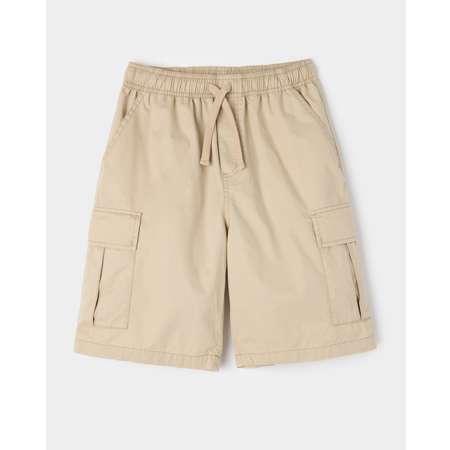 Текстильные шорты-бермуды для мальчика Futurino Fashion бежевого цвета, с накладными карманами.