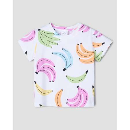 Белая футболка для девочки BabyGo, декорированная цветным принтом с бананами.