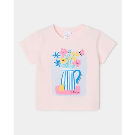 Розовая футболка для девочки BabyGo с цветным принтом.