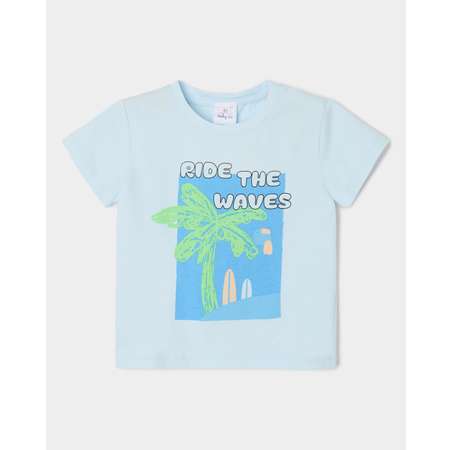 Светло-синяя футболка для мальчика BabyGo с летним принтом "Ride the waves".