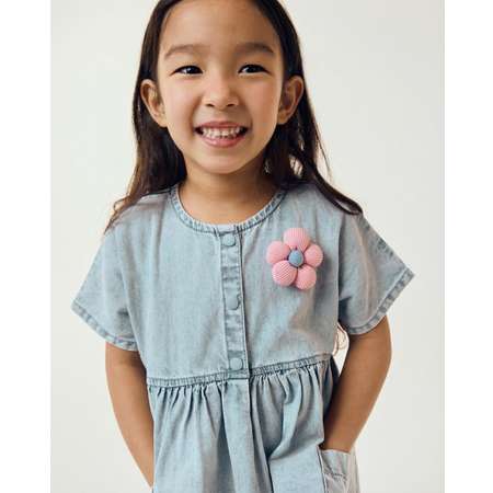 Джинсовое голубое платье для девочки BabyGо, декорированное объёмным цветком.