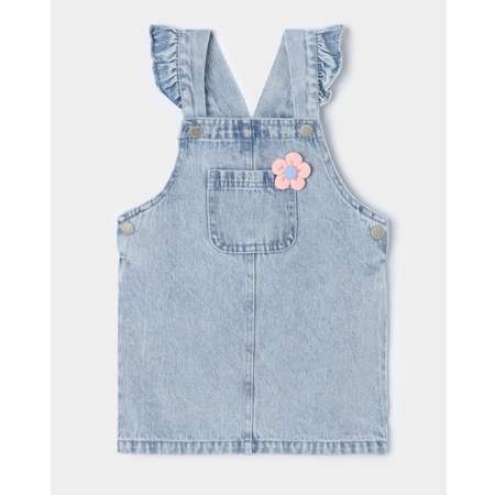 Джинсовый голубой сарафан для девочки BabyGо, декорированный оборками и объёмным цветком.