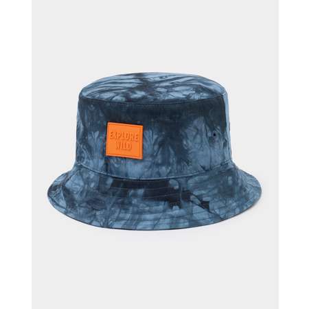 Синяя панама для мальчика Futurino с принтом тай-дай и яркой нашивкой.