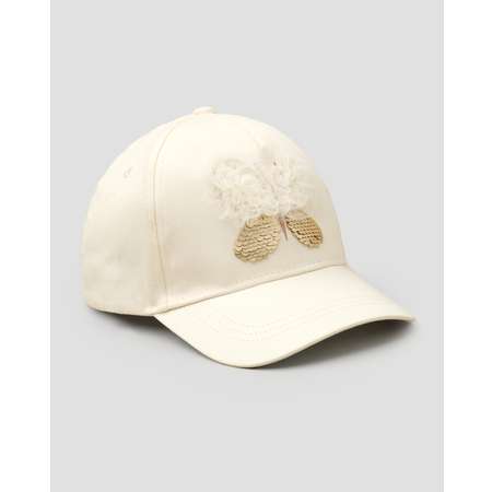Бежевая кепка для девочки Futurino с объёмным декором в виде бабочки.