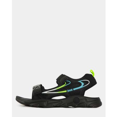 Чёрные сандалии для мальчика Jook с ярким декором и голографическим эффектом на ремешке.