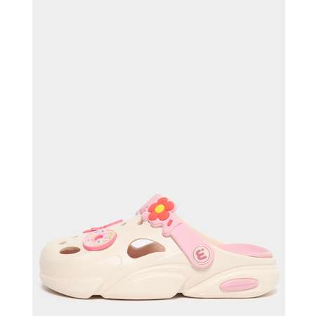 Светло-бежевые сабо для девочки Wappo с цветными джибитсами.