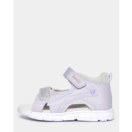 Блестящие сандалии для девочки Tombi в сиреневом цвете, с лёгким голографическим эффектом.
