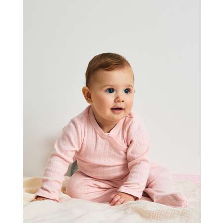 Розовый комплект для девочки Моя Горошинка из боди-кимоно и ползунков с нежным узором.