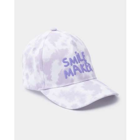Кепка для девочки Futurino с принтом-тай-дай в сиреневом цвете и объёмной надписью "Smile maker".