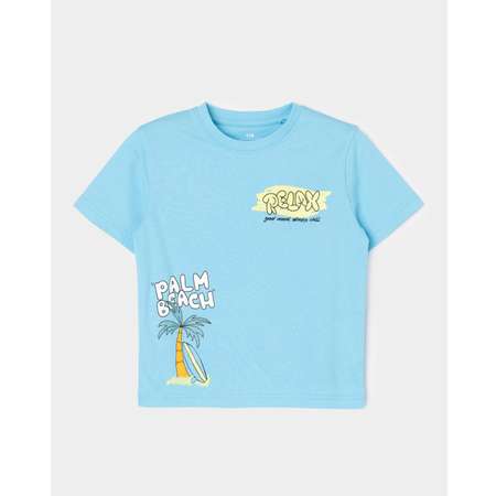 Бирюзовая футболка для мальчика Futurino с ярким летним принтом.