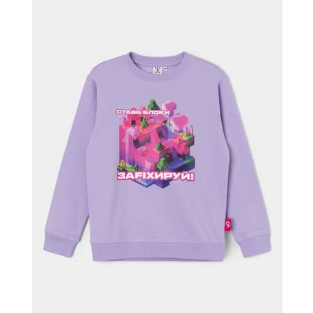 Сиреневый свитшот для девочки Futurino Fashion, декорированный красочным принтом с надписью "Ставь блоки. Заfixируй!"